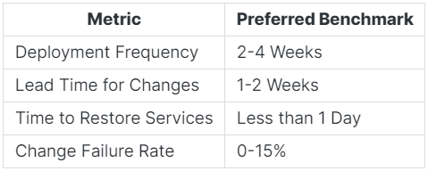 Complementary to the Flow Metrics are the DORA metrics issued by the Google Cloud's DevOps Research and Assessment(DORA) Team came up with a set of four metrics to assess the quality of your Value Stream Delivery. DORA's State of DevOps 2021 Report gives the four metrics as -